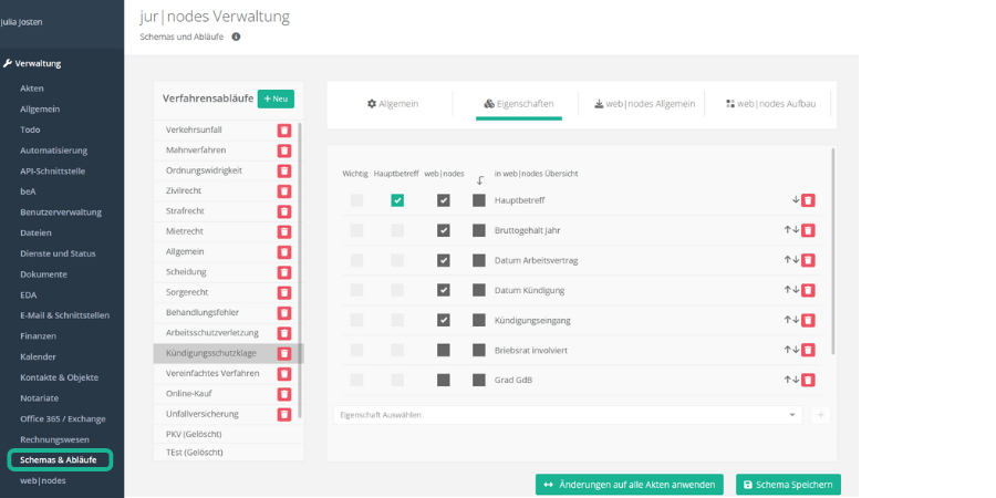 Um Ihre neu erstellen Akteneigenschaften auch in der Aktenbearbeitung nutzen zu können, müssen Sie noch einen weiteren Schritt vornehmen: Die Akteneigenschaft muss einem Verfahrensschema zugeordnet werden.