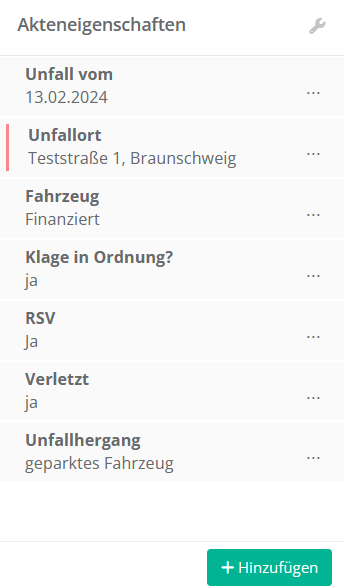 Hier finden Sie zum besseren Verständnis beispielhaft einige Akteneigenschaften passend zum Rechtsgebiet „Verkehrsrecht“:
