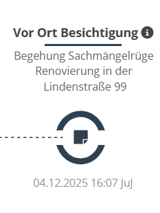 Klicken Sie in der Timeline auf das Information-Symbol des zu bearbeitenden Vermerks. Das Vermerkfenster öffnet sich und Sie können den Inhalt bearbeiten. Wenn eine Änderung vorgenommen wurde, wird das am unten Rand in einem Bearbeitungsverlauf protokolliert.