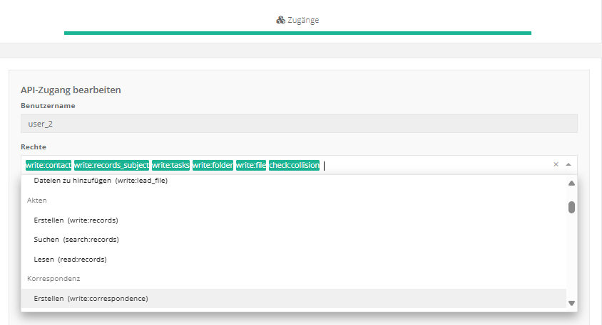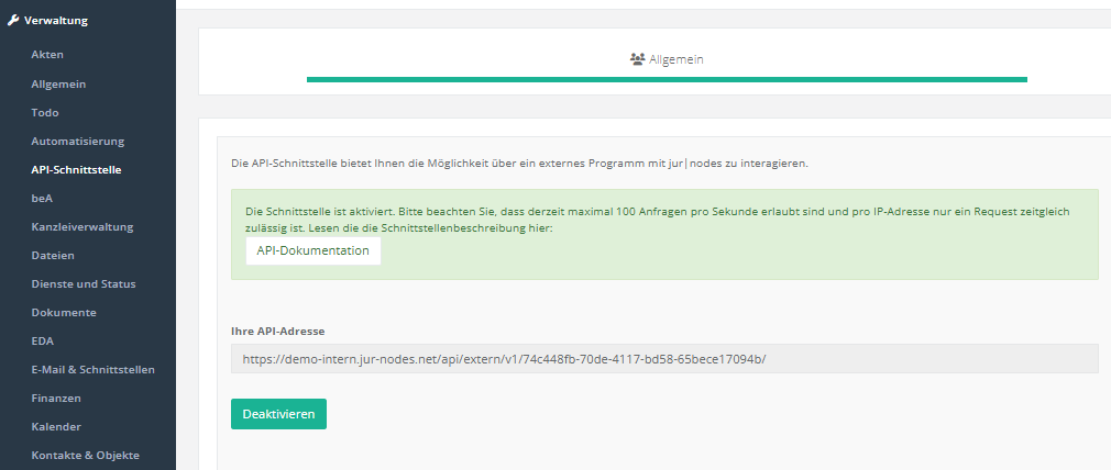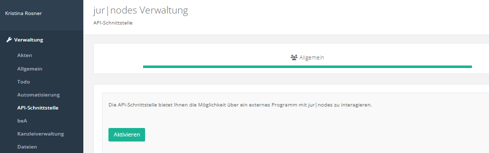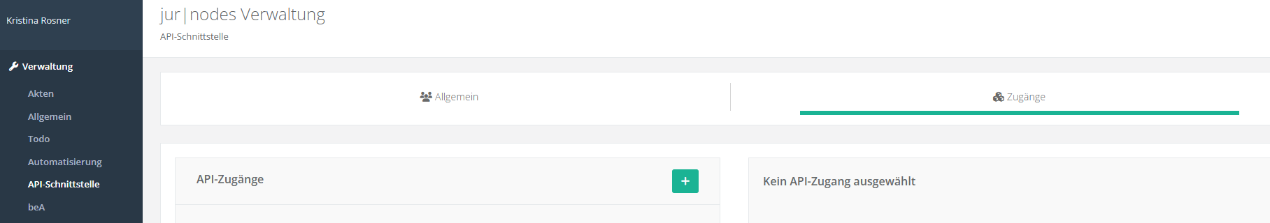 Gehen Sie in jur|nodes in den Bereich: Verwaltung –> API-Schnittstelle.