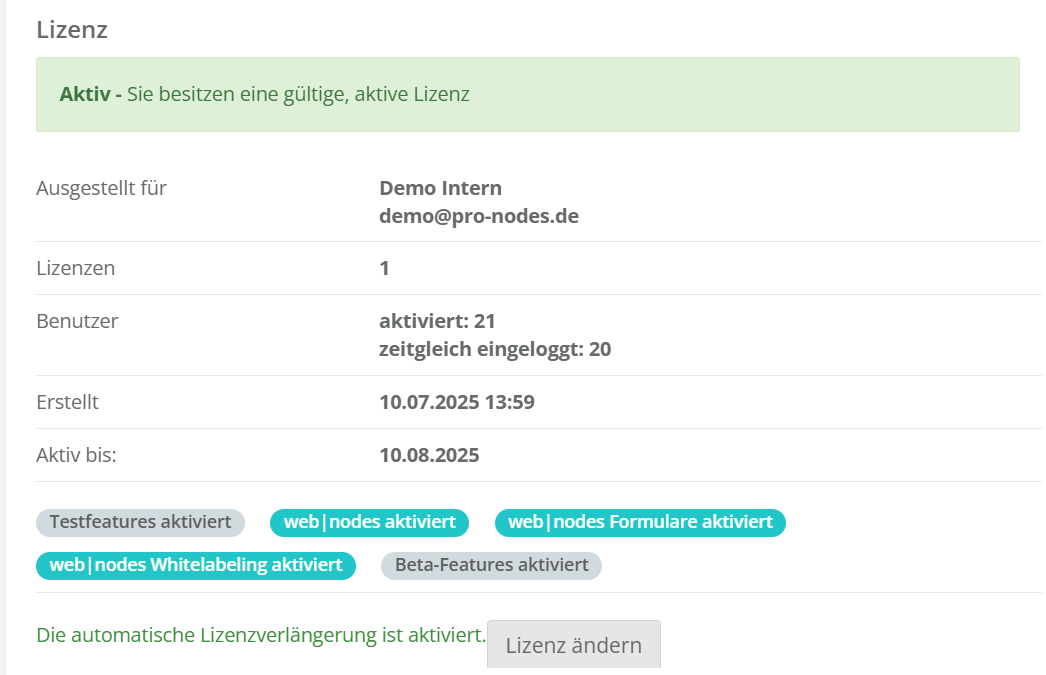 Bitte beachten Sie, dass nach einer Reduzierung Ihrer Lizenzen ein oder mehrere Benutzer deaktiviert werden müssen, um weiterhin alle Funktionen von jur|nodes verwenden zu können.