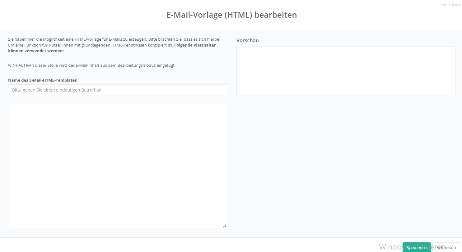 - Es öffnet sich ein HTML-Fenster, in welchem Sie Ihr E-Mail Layout erstellen können