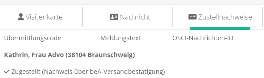 In jur|nodes finden Sie die Zustellnachweise in der gesendeten beA-Nachricht unten im Bereich „Zustellnachweise“. Klicken Sie in Ihrem beA-Postfach also auf den Ordner „Gesendet“.
