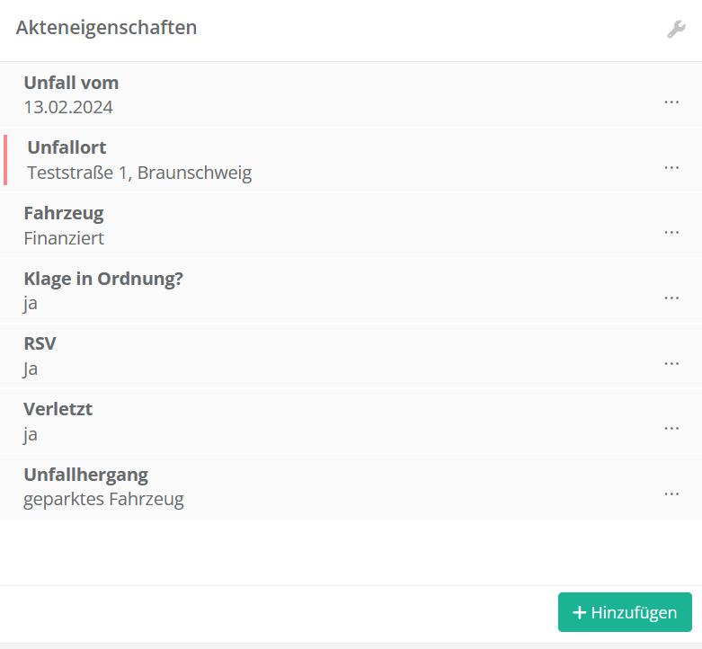 Mit Hilfe der Akteneigenschaften lassen sich in jur|nodes Informationen klar strukturieren, die in jeder Akte (eines jeweiligen Datenpools) eine Rolle spielen. Diese Eigenschaften frei konfigurierbar. Bei Verkehrsunfällen bietet sich zum Beispiel die Einrichtung des Akteneigenschaften: Unfallort, Unfall vom, Fahrzeugtyp an. Diese Ablage hat zwei entscheidende Vorteile