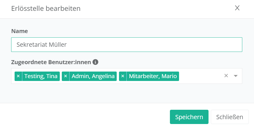 Hier können Sie entweder für einzelne Benutzer, oder mehrere Benutzer gemeinschaftlich Erlösstellen anlegen – beispielsweise für ein ganzes Dezernat oder ein Sekretariat.