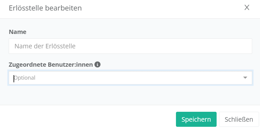 Um diese Funktion nutzen zu können, müssen zuerst sogenannte „Erlösstellen“ angelegt werden. Die Erlösstellen sind die „Kategorien“ auf die die Erlöse verteilt werden können. Einer Erlösstelle können auch mehrere Nutzer zugeteilt werden.