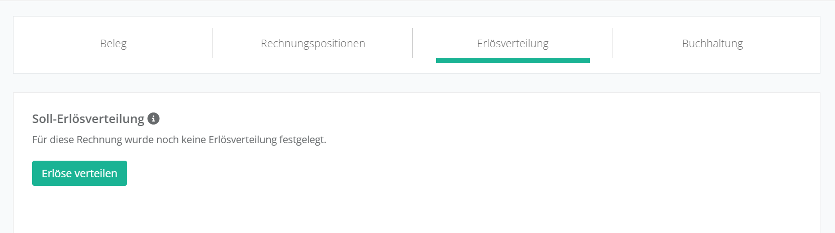 Die Soll-Erlösverteilung kann vorgenommen werden, sobald eine Rechnung final gebucht wird. Sobald Sie eine Rechnung finalisiert haben, können Sie im betreffenden Dialog den Reiter „Erlösverteilung“ anwählen.