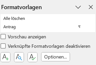 Es öffnet sich ein Pop-Up-Fenster namens „Formatvorlagen“. Klicken Sie auf den Button mit „A+“ um eine neue Formatvorlage zu erstellen.