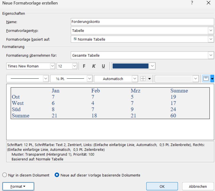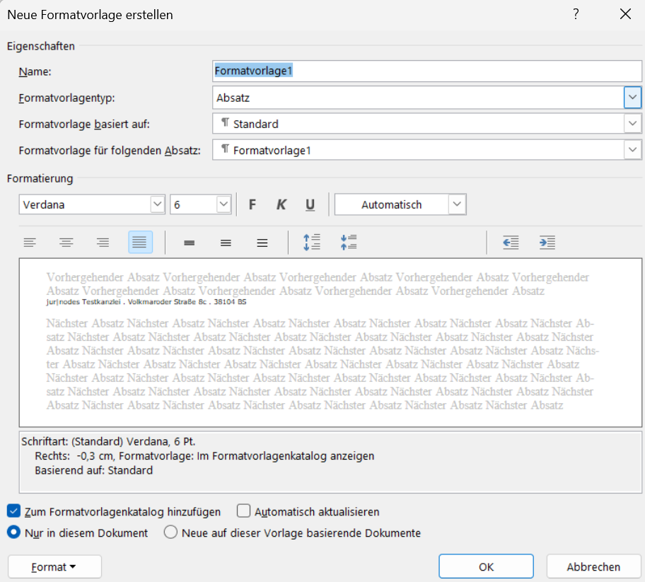 Es öffnet sich ein Fenster zum Erstellen einer neuen Formatvorlage.