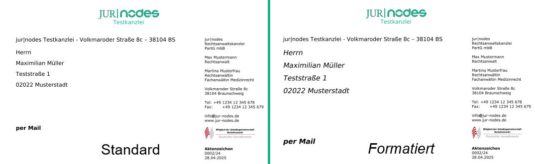 Resultat nach Speichern und hochladen des Briefkopfes mit der veränderten Formatvorlage: