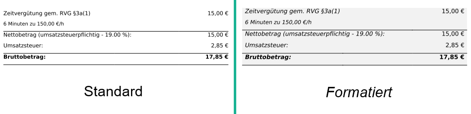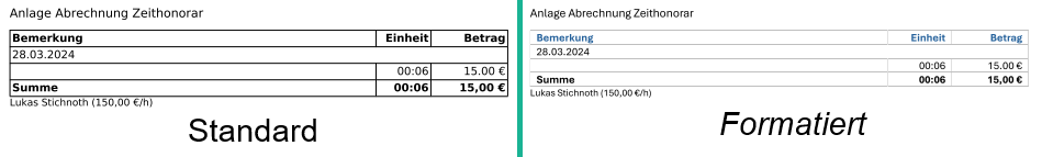 | Rechnung-Inhalt | Format für die Überschriften von Rechnungen | Verknüpft (Absatz und Zeichen) |