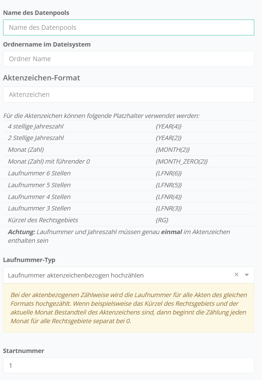 3. Datenpool anlegen und Aktenzeichen formatieren