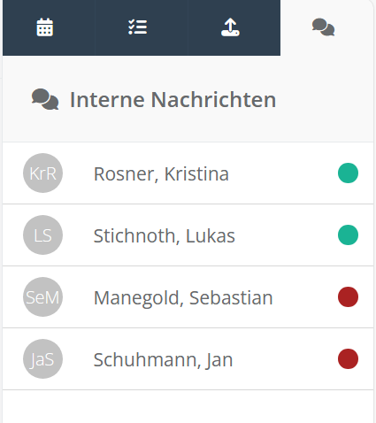 Die „Sidebar“ lässt sich ein- und ausblenden und beinhaltet einen Schnellzugriff zu folgenden Funktionen: To-Do-Liste, Termine, Datei-Ablage und die Chat-Funktion für die interne Kommunikation mit anderen Benutzern aus Ihrem Team.