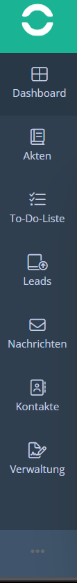 Um Ihre wichtigsten Einstellungen und Inhaltsbereiche in jur|nodes anzusteuern, steht Ihnen an der linken Bildschirmseite das Hauptmenü zur Verfügung, die für jeden Benutzer individuell konfiguriert werden kann.