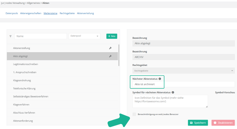 2. Benachrichtigung über neuen Aktenstatus teilen