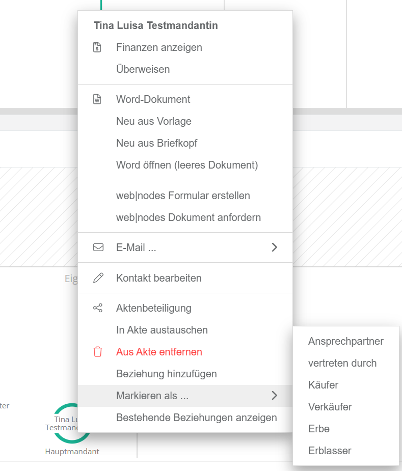 - Klicken Sie mit der rechten Maustaste auf den zu markierenden Beteiligten im Aktenbeteiligtenpanel.