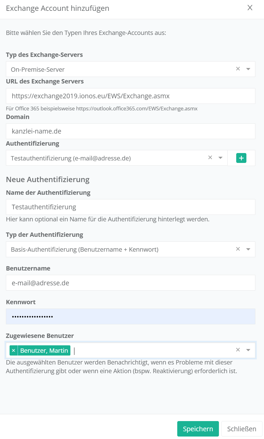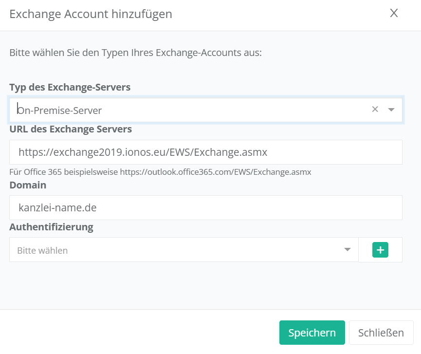 Wenn Sie beispielsweise Kunde beim Anbieter IONOS sind, kann die einzugebende URL so aussehen: