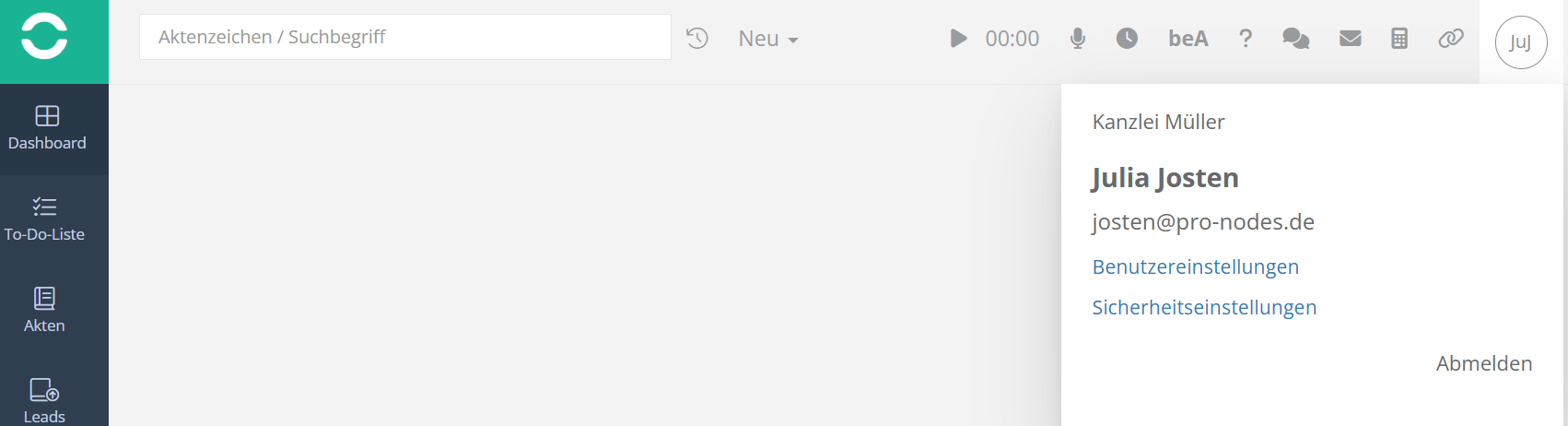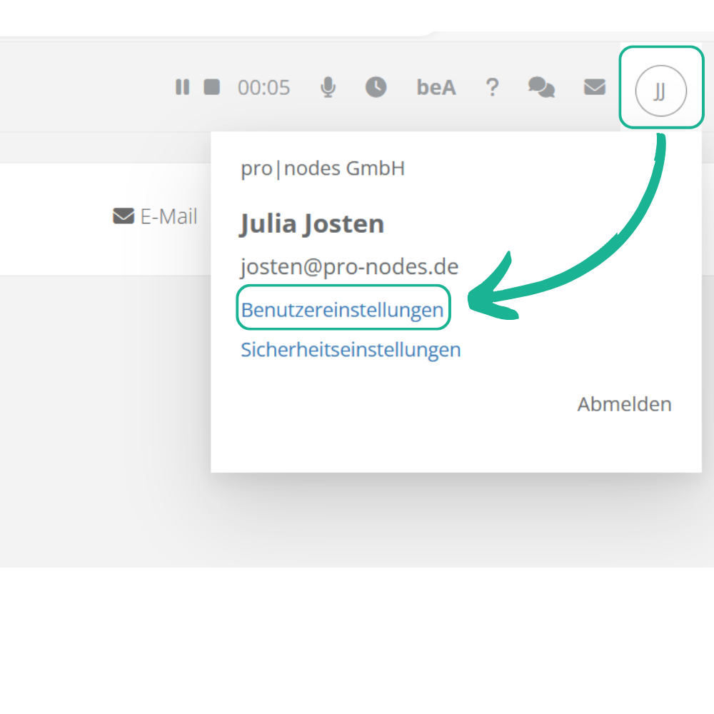 Sie können Ihre persönlichen Benutzereinstellungen in der Kopfzeile rechts über Ihr Benutzerkürzel aufrufen.