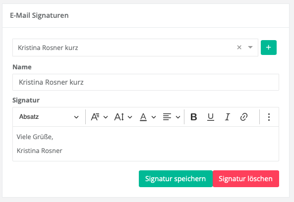 Zudem können Sie für unterschiedliche E-Mail-Adressen, über die Sie kommunizieren, verschiedene Signaturen und E-Mail-Layouts vergeben.