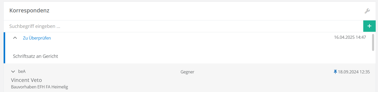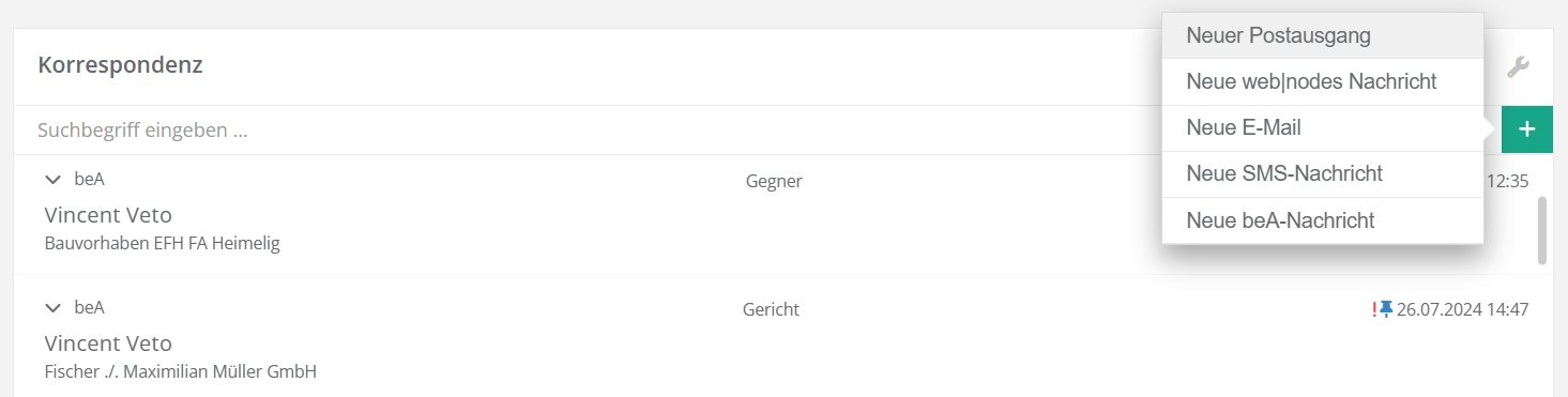 - Über das Korrespondenz-Panel in der Aktenansicht