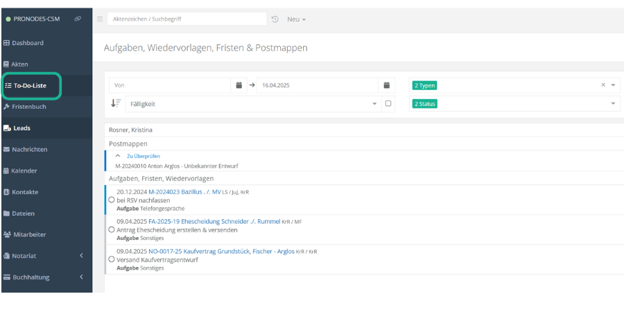 - Die Postmappe erscheint zur Bearbeitung in der To-Do-Liste des RA unter „Postmappen“.