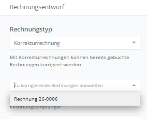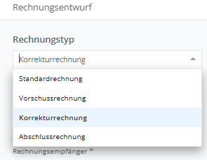 Wählen Sie den Rechnungstyp „Korrekturrechnung“ aus.
