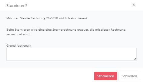 Es folgt eine kurze Sicherheitsabfrage. Hier können Sie optional einen Grund eintragen. Dies ist aber keine Voraussetzung für den erfolgreichen Stornovorgang.
