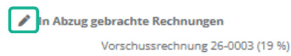 Sie können den standardgemäß hinterlegten Text zur Verrechnung der Vorschussrechnung ganz einfach selbst definieren, wenn Sie auf den Stift vor dem Text klicken: