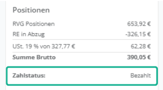 Sie finden nun auf der linken Seite im Fenster den Zahlstatus „Bezahlt“.