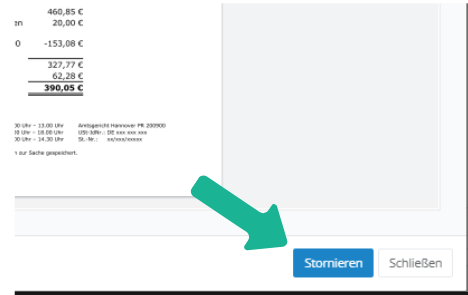 Klicken Sie anschließend unten rechts auf den blauen Button „Stornieren“: