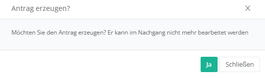 Nach dem Klick auf „Erzeugen“ erfolgt eine kurze Sicherheitsabfrage: