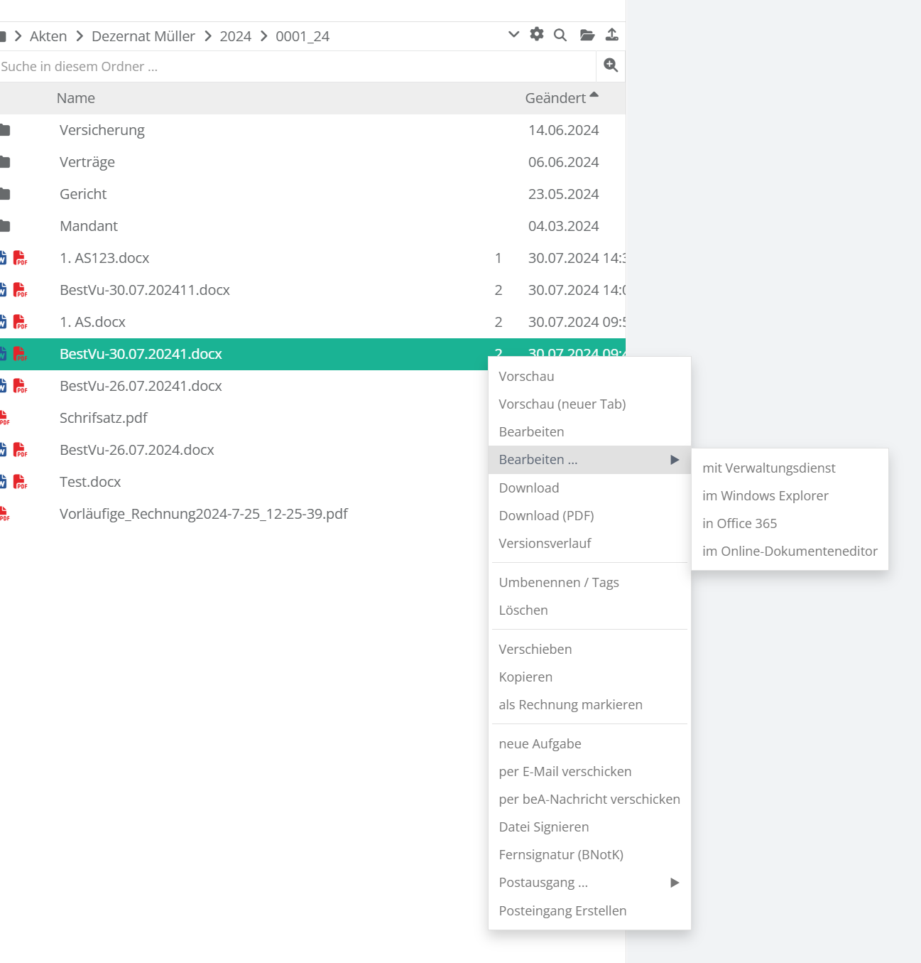2. Speichern und Bearbeiten von Dokumenten in Akten