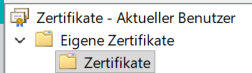 - Suchen Sie eine Datei namens „Clientzertifikat“ oder „jur-nodes.net“, das unter „Eigene Zertifikate“ hinterlegt ist.