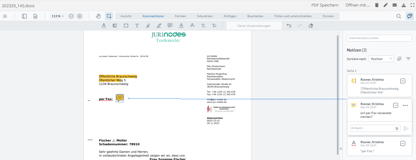 Über den „Sprechblasen-Button“ in der rechten oberen Ecke der PDF-Navigation haben Sie die Möglichkeit, sich diese Notizen gesammelt anzeigen zu lassen.