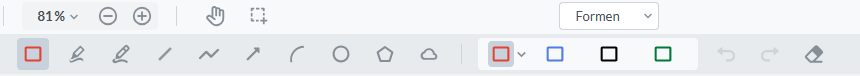 Über den Bereich „Formen“ können Sie in die PDF-Datei Formen einfügen, die Sie aus der detaillierten Navigation anwählen. Sie können zwischen Rechteck, Linie, Pfeil, Kreis, Vieleck und Wolke wählen. Dabei lassen sich die Farben dieser Elemente individuell in rot, blau, schwarz oder grün anpassen.